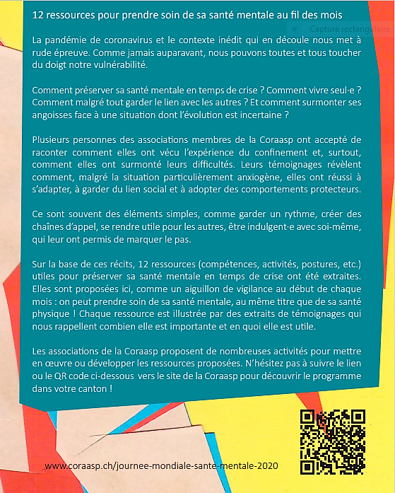 l'AFAAP a préparé un Kit de survie en santé mentale (journée mondiale de la santé mentale 2020)
